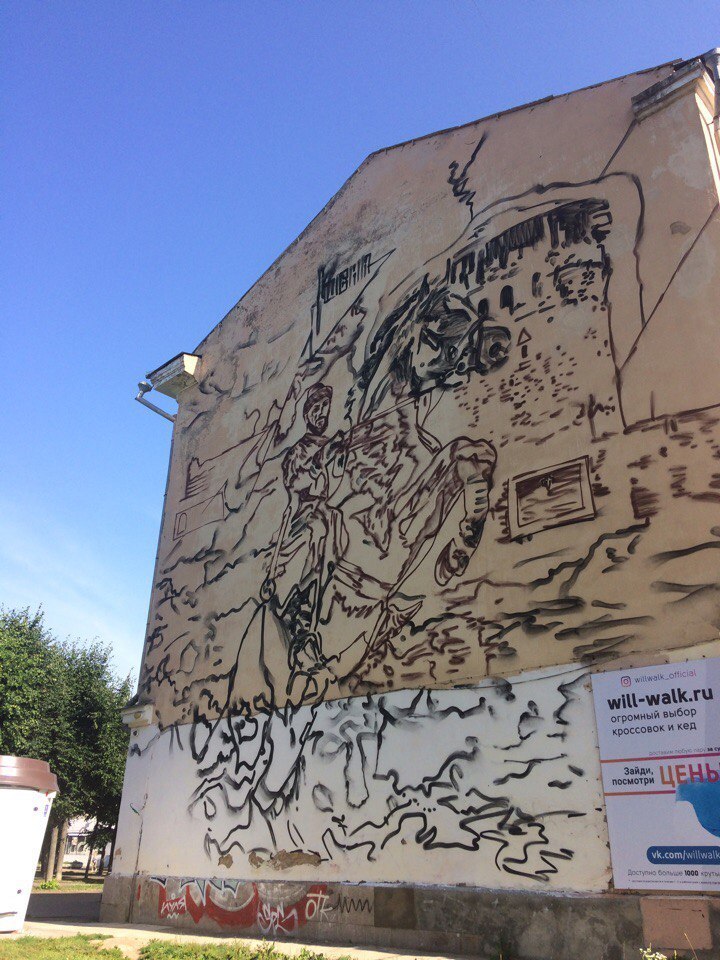 – А граффити, посвященные Великой Отечественной войне и Михаилу Шеину, – это были первые настолько масштабные работы для вас?