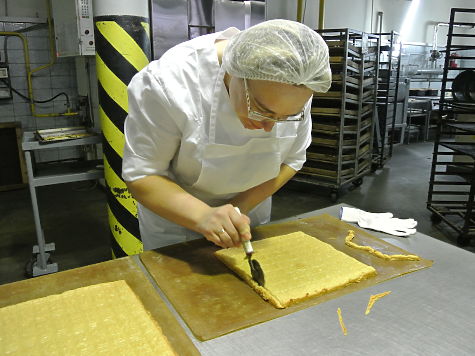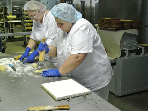 Итак, в чём же заключается уникальность вяземского пряника? Основа пряника – мёд. Туда «вбивают» муку, сахарную пудру и орешки или цукаты. Потому эти прянички и называют битыми. Раньше тесто отбивали специальной киянкой, сейчас используют компрессор. Вяземские пряники – штучный товар, их делают вручную и понемногу – по заявкам. На заводе выпускают пряники с миндалем, цукатами и арахисом. Кстати, на пряничном производстве трудятся всего три человека.