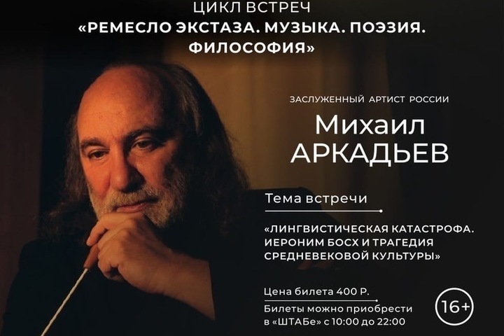 19 февраля, в пятницу, в 19:00 в креативном пространстве "Штаб" по адресу Смоленк, Жукова-9, состоится творческая встреча с заслуженным артистом России Михаилом Аркадьевым из цикла "Ремесло экстаза. Музыка. Поэзия. Философия".