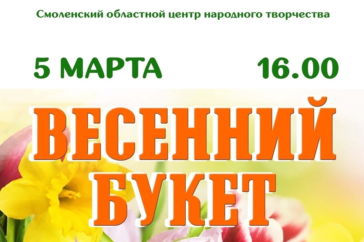 Смоленский областной центр народного творчества приглашает вас на праздничную программу «Весенний букет», которая состоится 5-го марта.