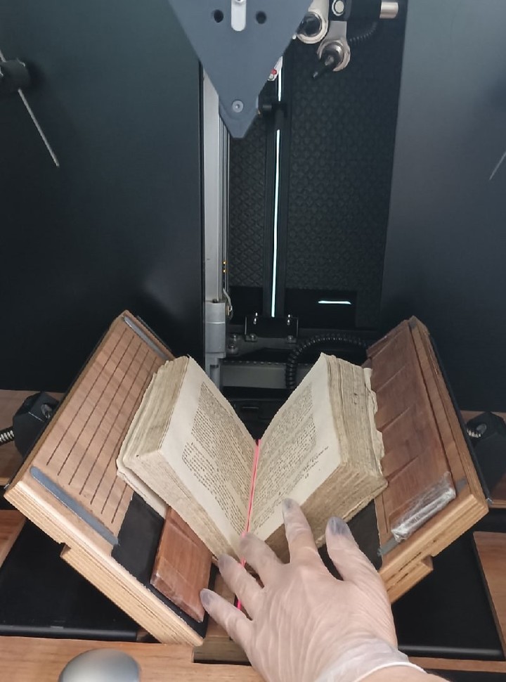 Перелистывание и сканирование страниц происходят автоматически. Задачей сотрудника отдела является выравнивание готового изображения и оформление документа в соответствии с техническими требованиями Национальной электронной библиотеки.