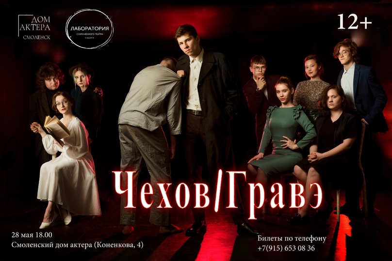 А 28 мая в 18.00 смоленские зрители увидят комедию  "Чехов. Гравэ". Это театральный альманах по рассказам Антона Павловича Чехова.