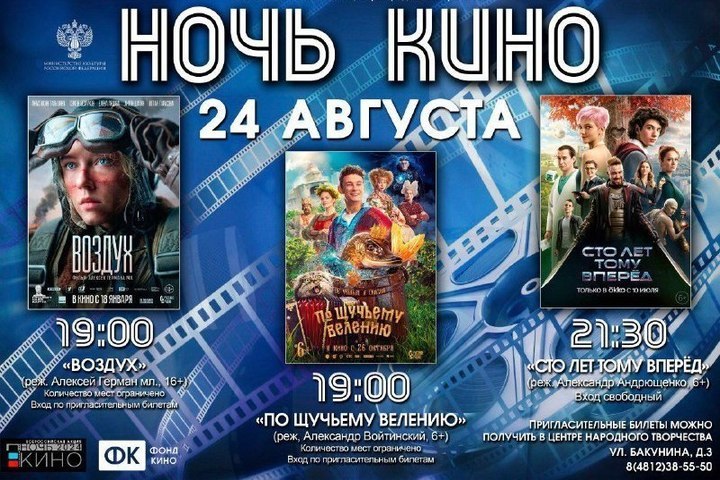 Сегодня, 24 августа приглашаем смолян и гостей города абсолютно бесплатно посмотреть российские бестселлеры на экранах Центра народного творчества!