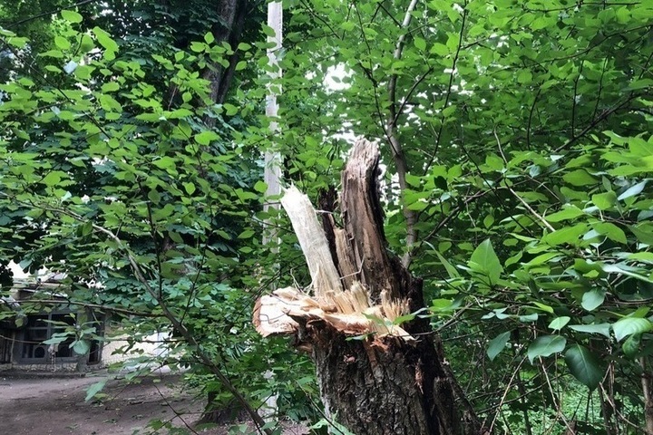 В Смоленске на Коммунистической устраняют последствия падения дерева во дворе дома номер шесть.