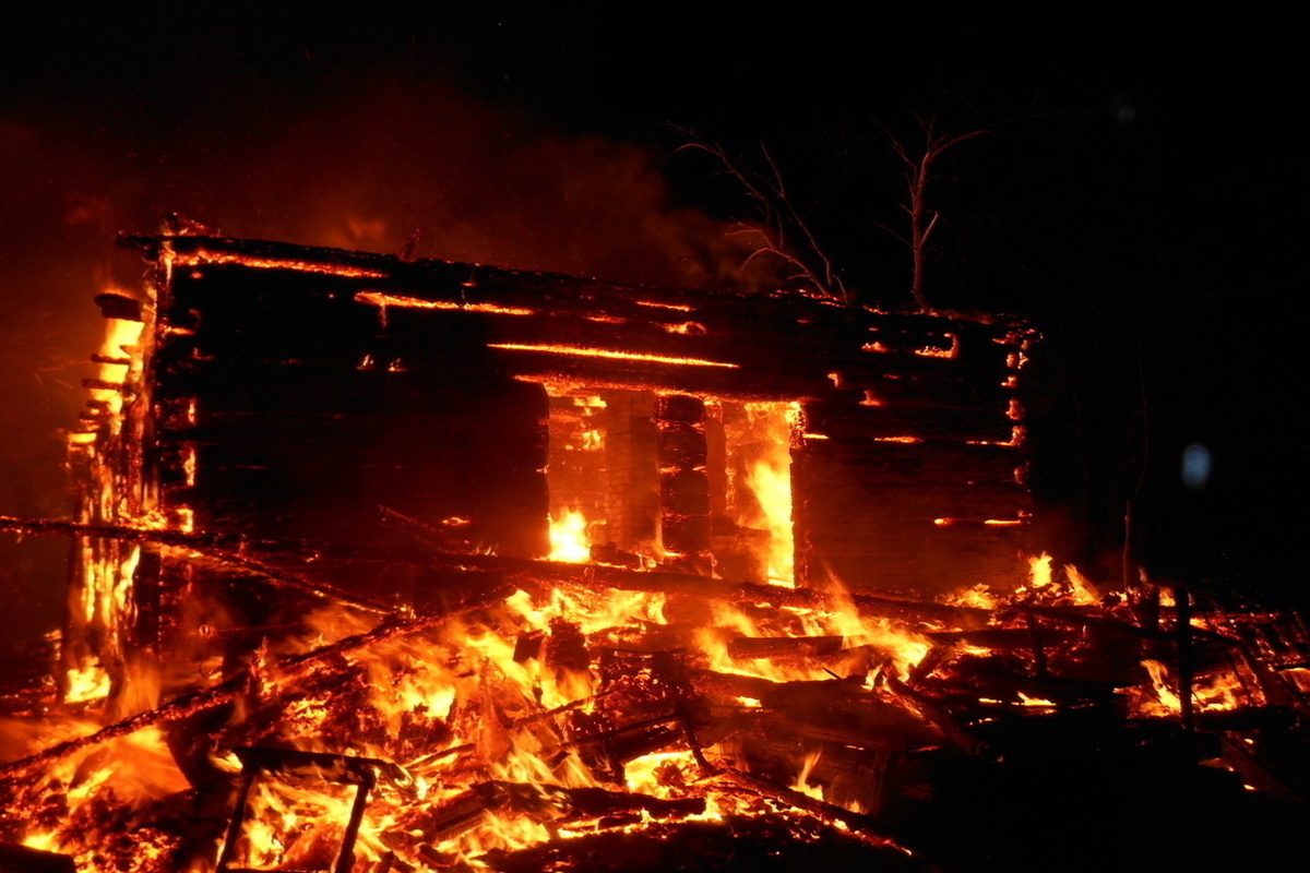 На момент прибытия пожарных рубленое здание размером 6 х 8 метров горело по всей площади открытым огнем.