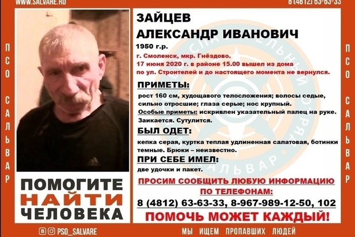 Известно, что в среду, 17 июня, около 15:00 он ушел из дома на улице Строителей в поселке Гнездово и до настоящего момента о его местоположении не известно.