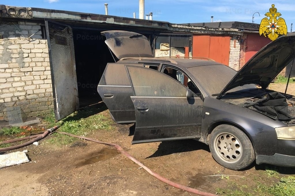 Смоленские пожарные уберегли автомобиль в горящем гараже