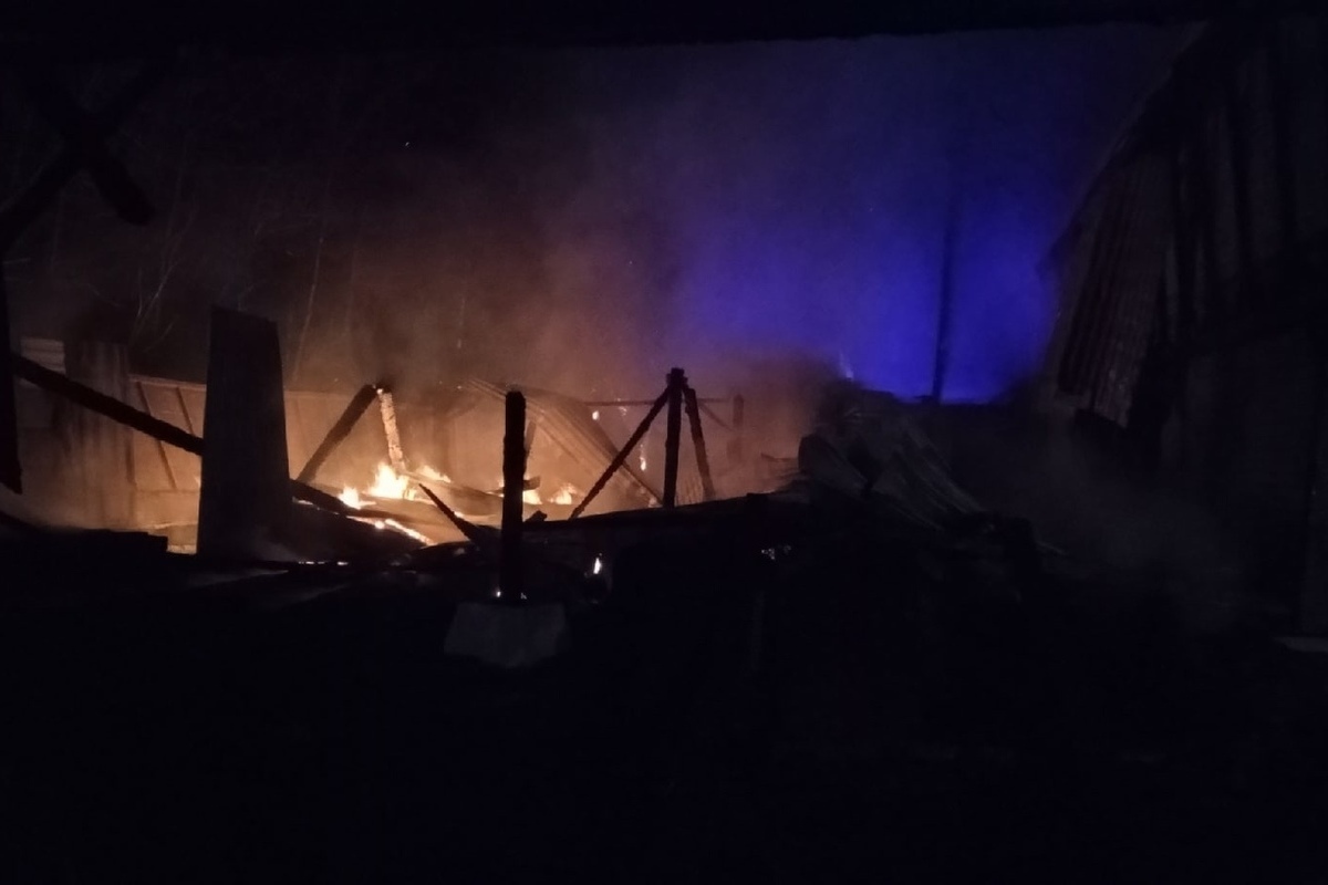 Был объявлен повышенный номер вызова. Огонь молниеносно распространялся по пиломатериалам внутри навела. Несколько часов пожарные боролись с огнем.