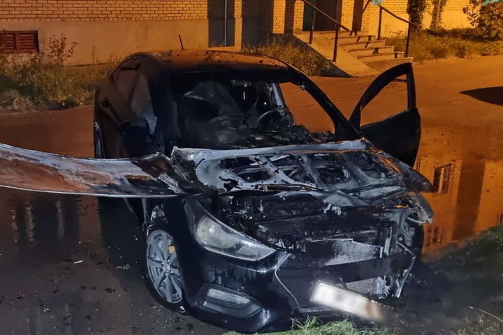 Во дворе горел автомобиль Hyndai Solaris 2017 года выпуска. Очевидцы вызвали пожарных.
