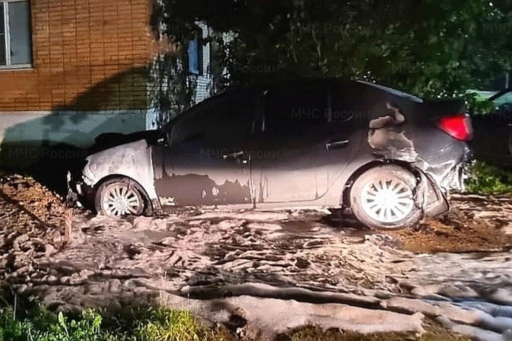 Пожарные незамедлительно приступили к тушению. Водители стоящих рядом машин начали отгонять свои авто, чтобы огонь не перекинулся на них. Пожар потушен. Иномарка 2015 года выпуска сгорела полностью.