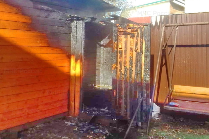 В результате туалет выгорел изнутри, частично повреждена стена дровяного сарая, но сами дрова остались в целости.