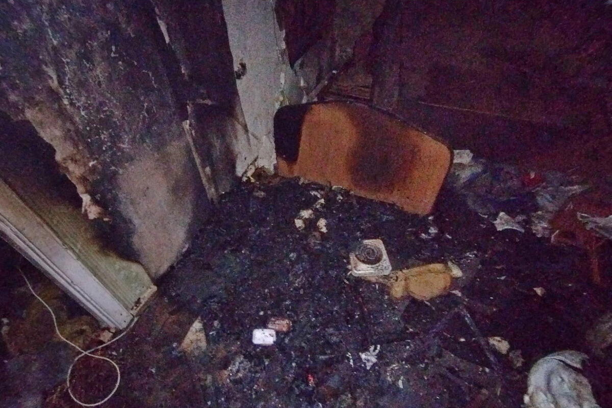 Пожар был ликвидирован. Одна из комнат значительно повреждена огнем, квартира частично закопчена продуктами горения.