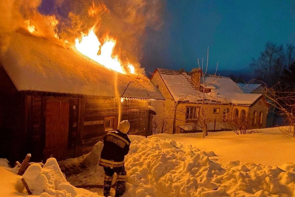 В Результате пожара уничтожен нежилой дом, у жилого поврежден деревянный конек крыши.