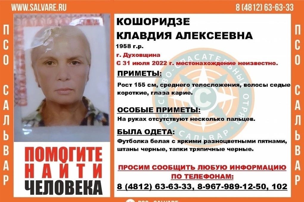 Поисково-спасательный отряд "Сальвар" объявил о пропаже человека в Духовщине.