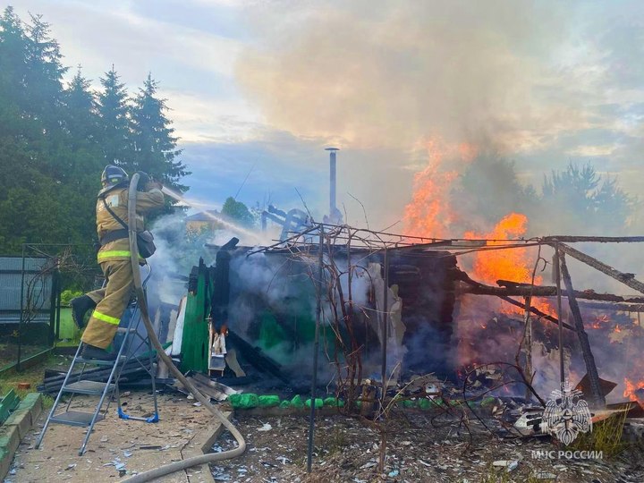 Пострадавших нет. Постройки сильно повреждены огнем.