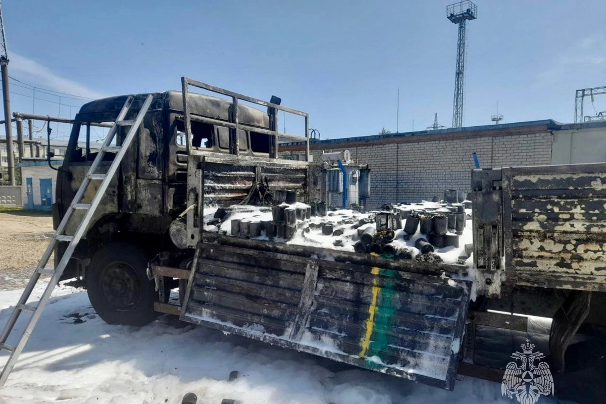 В Смоленске на улице Попова произошло возгорание грузового автомобиля марки КамАЗ. В кузове автомобиля находились емкости с лакокрасочными материалами.