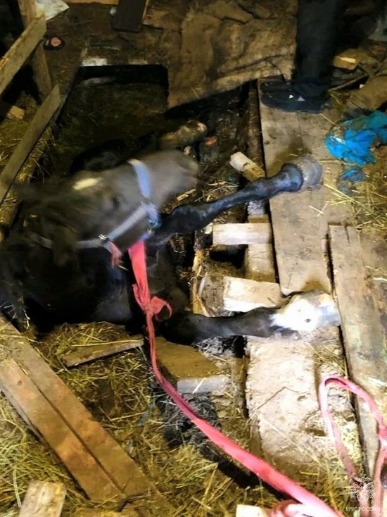 Местные жители содержат коня по кличке Мартин. В сарае, где он находился прогнили доски пола, и жеребец провалился под пол.