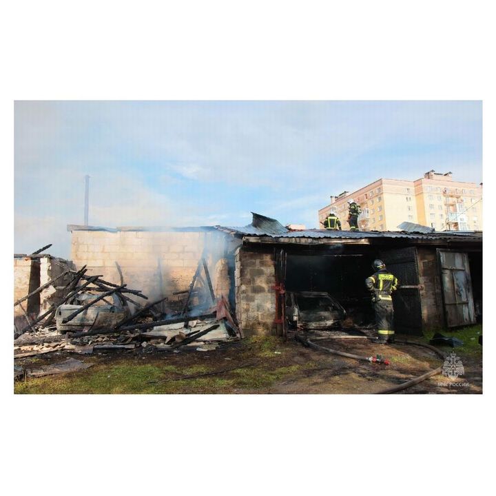 Огнем были повреждены пять гаражных боксов и два автомобиля.