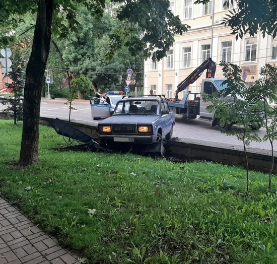 Ночью на проспекте Гагарина города Смоленска сотрудники ДПС пытались остановить автомобиль марки «ВАЗ 2107». Водитель попытался скрыться, петлял по центру, но около мэрии не справился с управлением и снес бетонный парапет на Блонье.