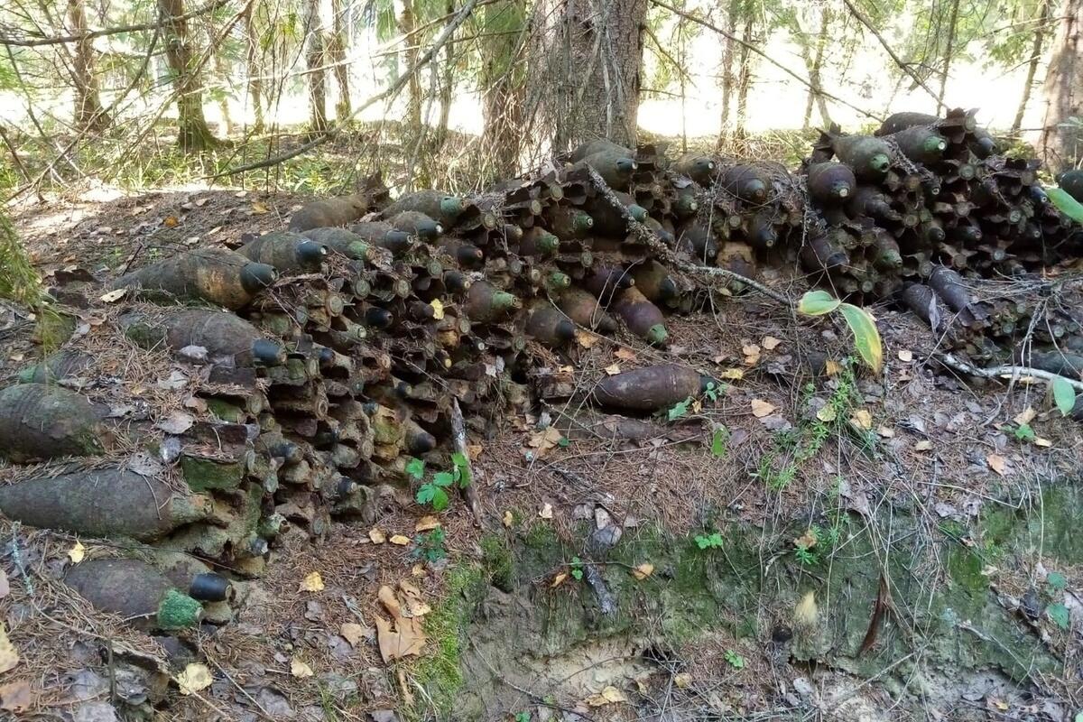Видимо здесь была минометная батарея. Найдены 53 минометные мины калибра 50 мм и 285минометных мин калибра 82 мм. Все советского производства.