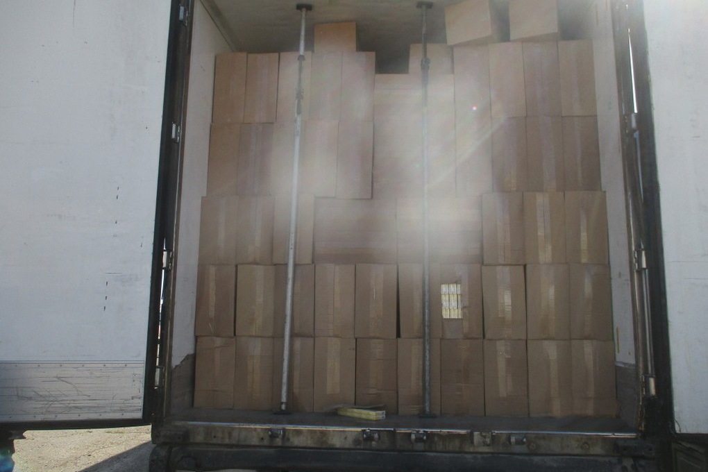 В прицепе было 730 тыс. пачек белорусских сигарет без специальных акцизных марок, документов у водителя не оказалось.
