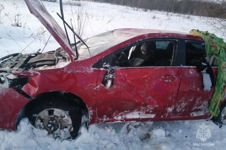 По прибытии на место пожарные расчеты исключили возможность возгорания и помогли пострадавшим выбраться из машины.
