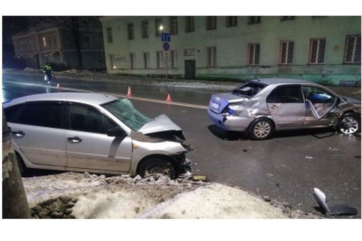 Около девяти часов вечера 24 января в Смоленске на Витебском шоссе произошло ДТП в котором лоб в лоб столкнулись Лада Гранта и Mitsubishi Lancer.