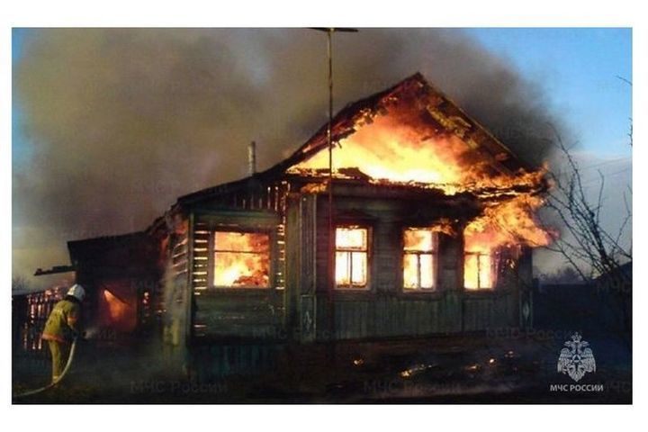 В результате пожара дом выгорел изнутри по всей площади, уничтожена кровля.
