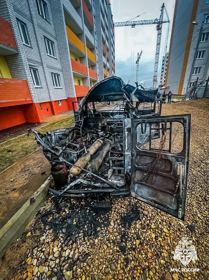 По прибытии на место пожарные расчеты оперативно ликвидировали возгорание. В результате пожара автомобиль уничтожен полностью. Взрывом кузов вывернуло на изнанку.