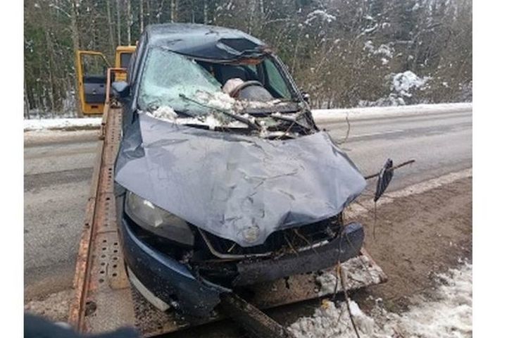 Водитель 1988 года рождения за рулем «Шкоды Рапид», не успел среагировать на выскочившего на дорогу лося, сбил его и после этого вылетел с дороги в кювет.