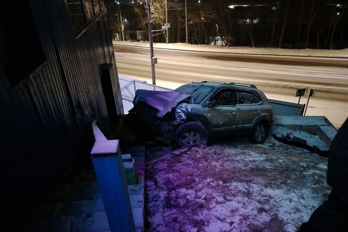 47-летний водитель такси за рулем «Хендай Тусон», вылетел с дороги вверх по склону, снес несколько на деревья и влетел в стену автосервиса на втором ярусе.