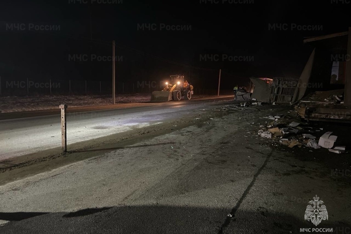 Напомним, в ДТП участвовали четыре автомобиля, из них две фуры разложились по всей ширине трассы в одну сторону.