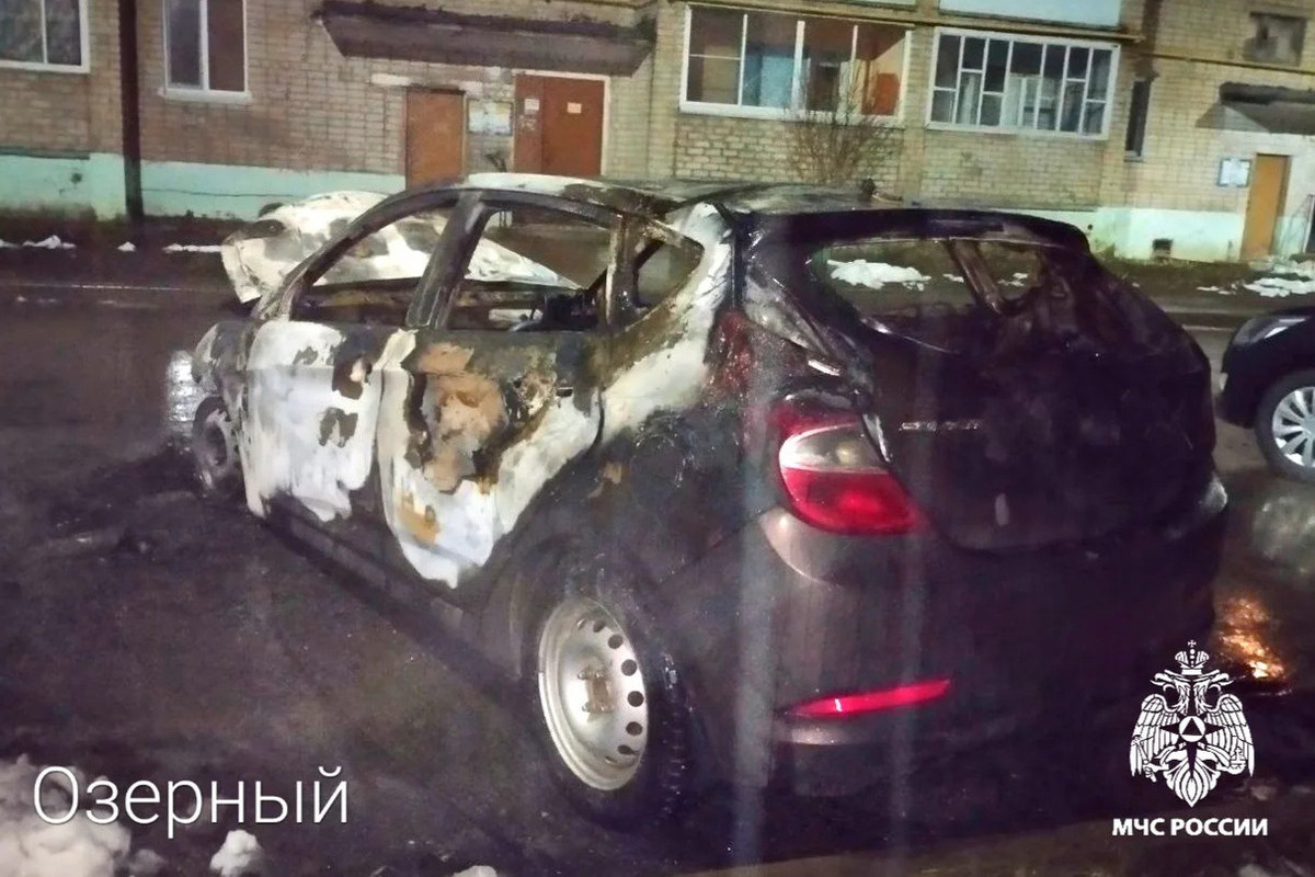 Происшествие произошло в поселке Озерный Духовщинского муниципального округа. Во дворе многоэтажного дома в ночное время загорелся припаркованный легковой автомобиль. Пламя заметили жильцы дома и вызвали пожарных.