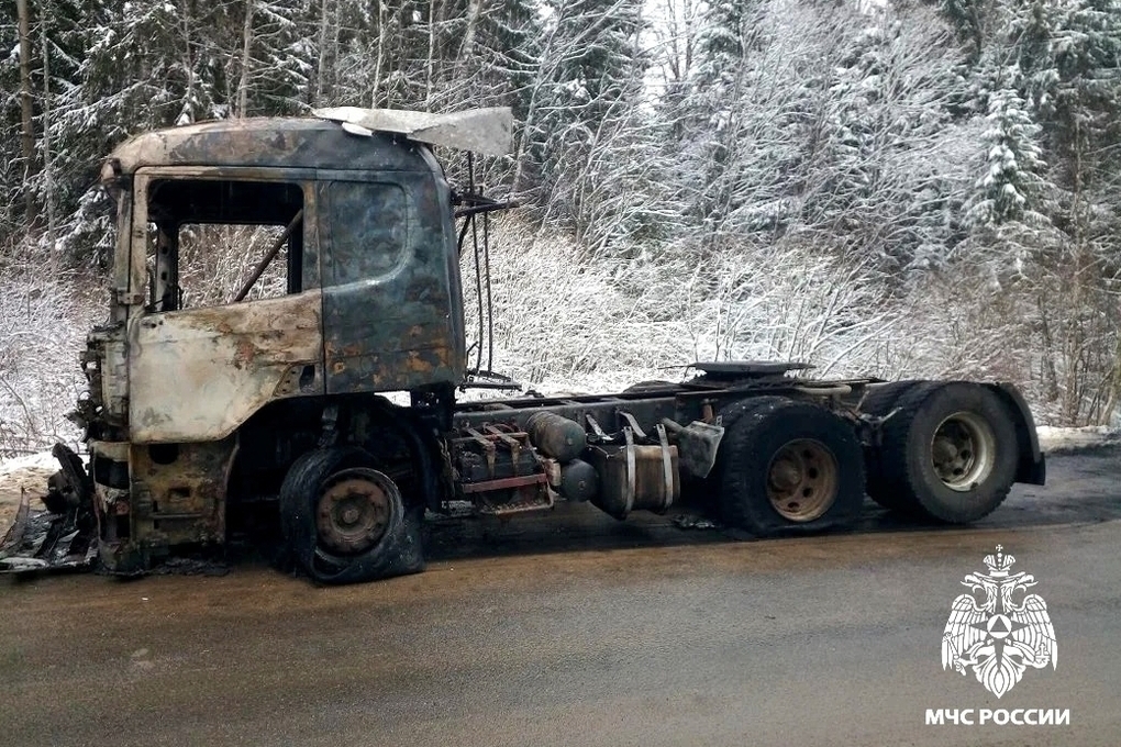 Прибывшие пожарные полностью ликвидировали пожар, однако спасти седельный тягач не удалось — он полностью выгорел.