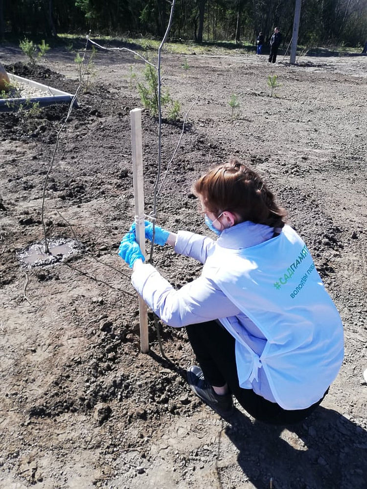 Высадка саженцев деревьев и кустарников прошла в рамках международной акции "Сад Памяти 2020". Инициаторами акции в преддверии 75-летия Победы Всероссийское общественное движение «Волонтёры Победы» и Фонд памяти полководцев Победы.