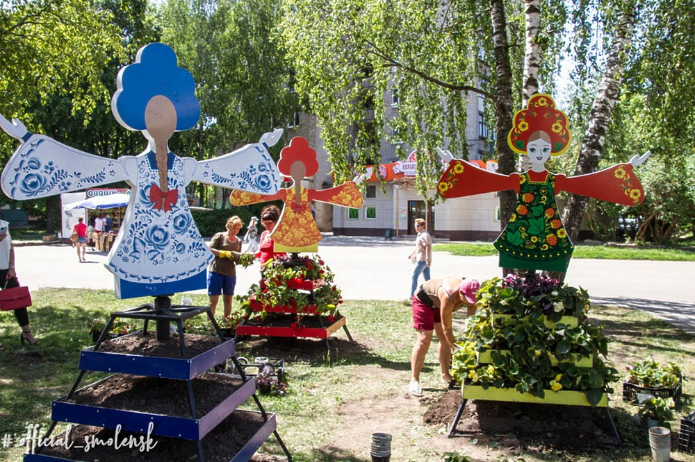 Любимые смолянами клумбы "девчата" в этом году будут радовать глаз горожан на новом месте. На это лето они поселились на площадке перед ЦУМом. Привычное их место за памятником Федору Коню возле Крепостной стены ждет благоустройства.
