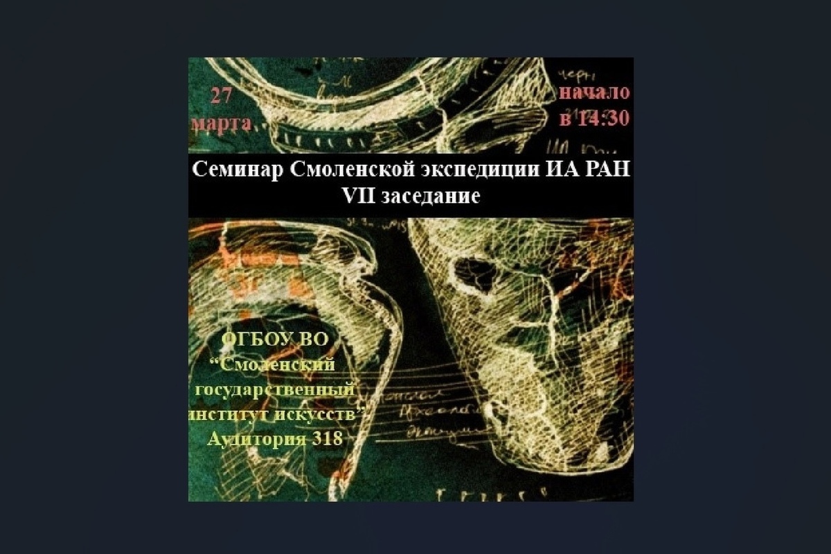27 марта в 14:30 в Смоленском государственном институте искусств в состоится исторический семинар. 7-й семинар Смоленской экспедиции Института археологии Российской академии наук.