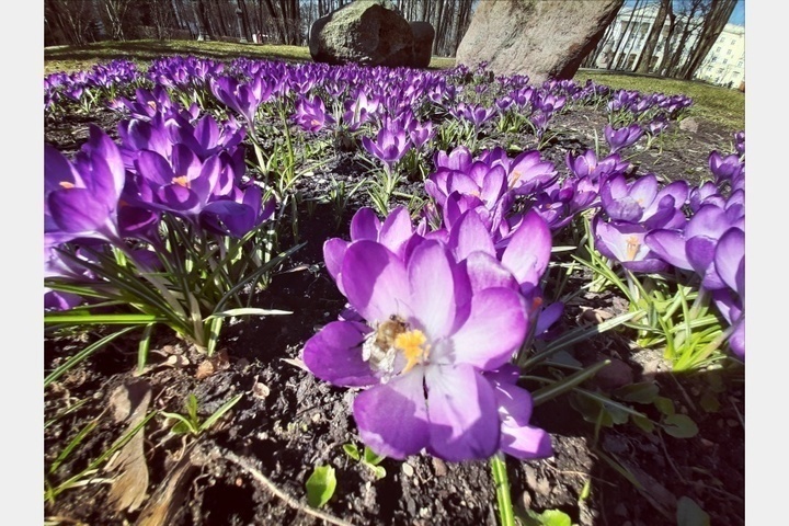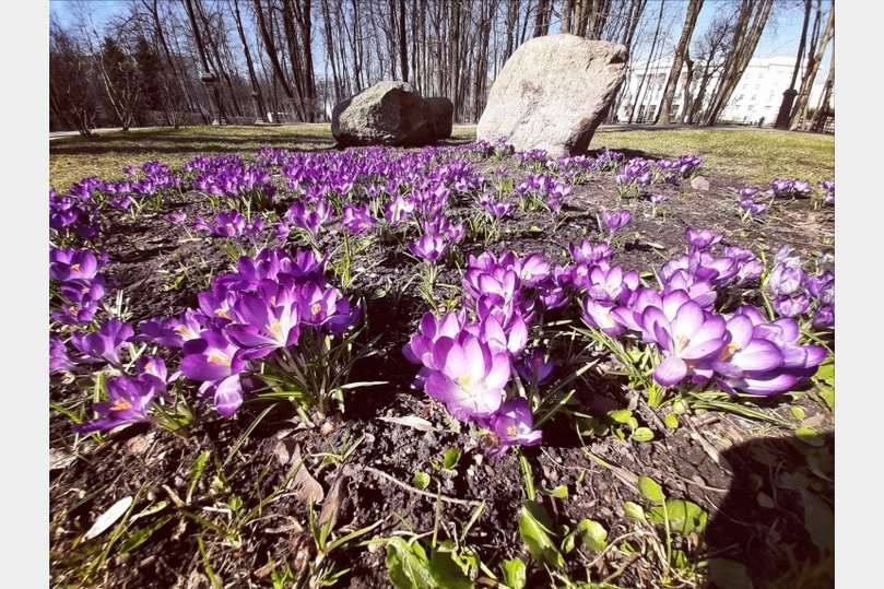 В предыдущие годы работники МУП «Зеленстрой» высадили в парке Блонье в Смоленке около 8 000 луковиц галантусов и крокусов. В эти дни они взошли и дали первые цветы.