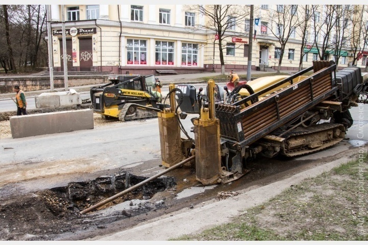 На улице Николаева в Смоленске началась работа по укладыванию подземных коммуникаций. Здесь необходимо заменить трубу канализационного коллектора, диаметром 40 сантиметров и протяжённостью более 400 метров. На время данных работ для водоотведения смонтировали резервная линия из стальных труб.