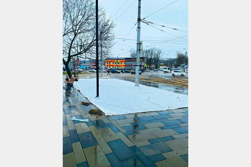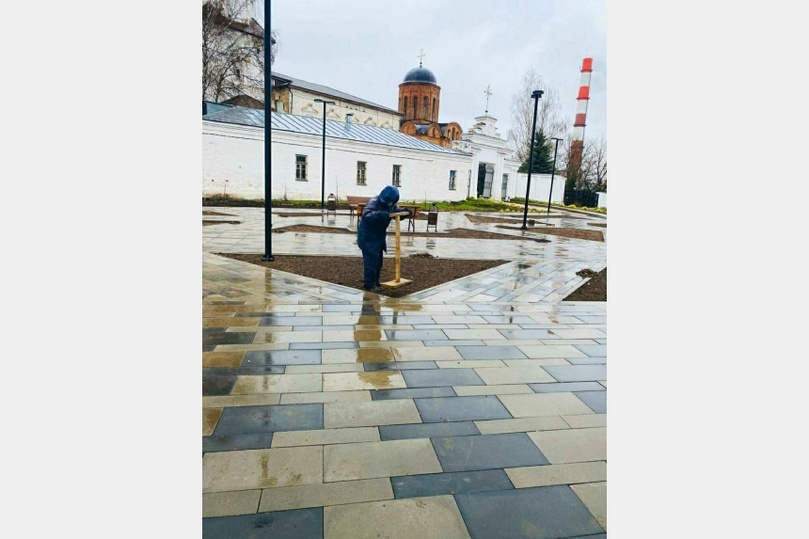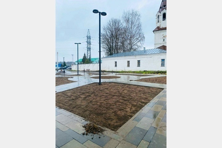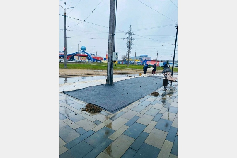 На территории сквера перед церковью Петра и Павла в Смоленске высадили газоны. После того, как закончилась трамбовка семян, работники «Зеленстроя» укрыли почву спецматериалом. Он должен уберечь всходы от непогоды и птиц.