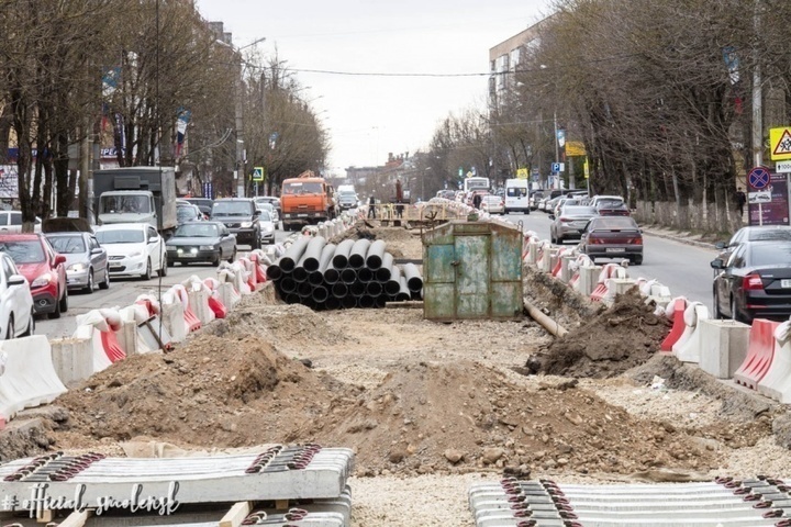 Работы идут сразу в 3-х направлениях: замена канализационного коллектора, укладка трамвайных путей, замена ливневок и водопровода.