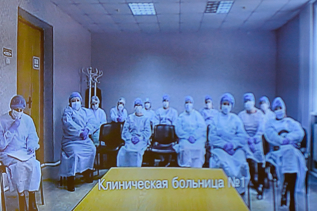 Глава Смоленщины Алексей Островский обсудил в режиме видеоконференцсвязи с сотрудниками инфекционного отделения госпиталя №2 Клинической больницы №1 вопросы оплаты труда медицинских работников, оказывающих помощь пациентам с новой коронавирусной инфекцией.
