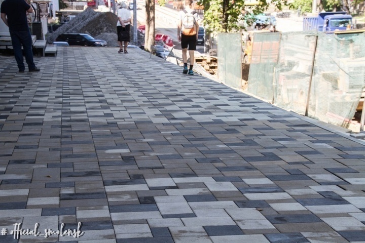 Для того, чтобы пешеходам было удобнее перемещаться, на некоторых участках уложена плитка. Но ремонт там имеет ещё не финальный вид. Все недостатки, как заверяет подрядчик, там будут устранены к завершению ремонта.