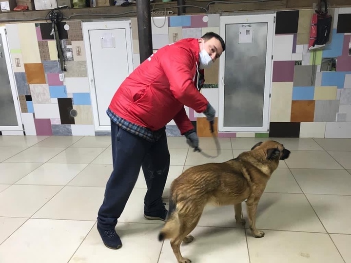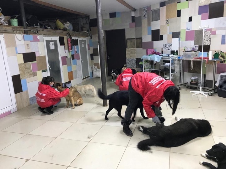 Добровольцы позанимались с собаками, погуляли с ними и причесали.
