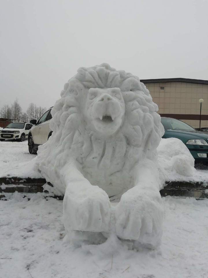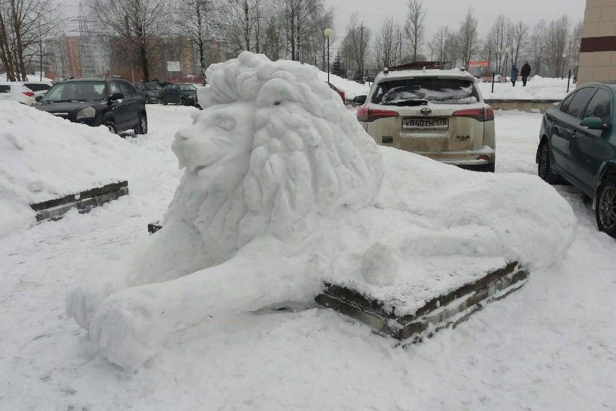 В Смоленске на Индустриальной около дома номер 2 вновь появилась снежная скульптура - грациозный лев.