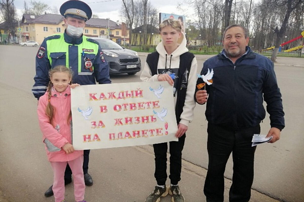 «Уважаемые участники дорожного движения! Мы, юное поколение, поздравляем вас с наступающим праздником – Днем Победы! Мы призываем вас соблюдать Правила дорожного движения, чтобы прекратить «дорожные войны»! Будьте дисциплинированны и ответственны…», - с таких слов с помощью звукоусиливающей аппаратуры патрульного автомобиля ГИБДД началось проведение, ставшей уже традиционной, акции «Голубь мира» в Сафонове.