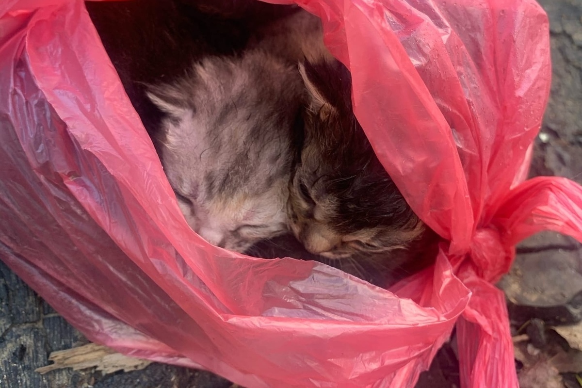 «Пожилой мужчина приехал на машине на колонку, по ул.Велижская достал из машины маленький пакет и перебросил через забор к нам во двор. Этот маленький малозаметный пакет пролежал 2 часа, спустя 2ч наша собака унюхала, открыли пакет и увидели ЭТО», – негодует женщина, нашедшая котят.