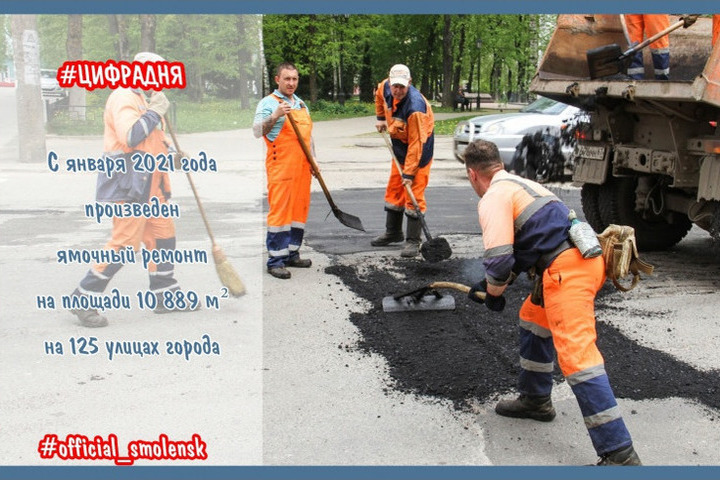 Около 11 тысяч квадратных метров дорожных ям ликвидировали в Смоленске с начала года