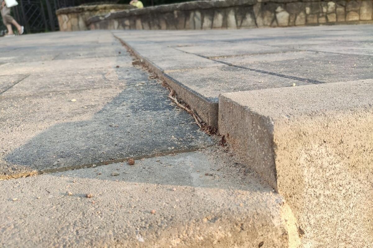 Пешеходная зона возле Дома Советов, которую отремонтировали недавно, получилась разного уровня – на кадрах смолян видно, что одна часть тротуара выше другой на несколько сантиметров.