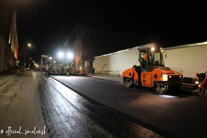 Ремонт дорог в центра Смоленска выходит на финишную прямую – прошлой ночью на улице Пржевальского рабочие уложили верхний слой асфальтного покрытия. В ближайшие дни новое дорожное полотно уложат на улицах Коммунистической, Карла Маркса, Кирилла и Мефодия, Коненкова и площади Ленина. Об этом сообщили в пресс-службе администрации областного центра.